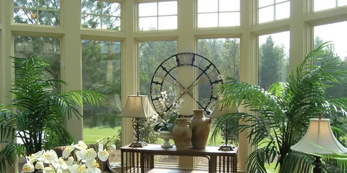 Спальню или гостиную квартиры можно легко превратить в полноценную оранжерею путем использования в ней крупных по размеру растений. Помещаются они обычно в горшки. Для создания ностальгического настроя лучшим вариантом будет длиннолистный фикус, пальма, самшит или лимон.