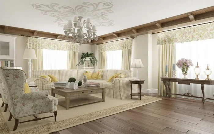 Данное стилистическое направление сочетает в себе гармонию, деревенскую простоту, шарм и изящество, скромность в отделке и богатство идей. Цветовое решение комнаты останавливается на пастельных тонах: бледно-голубой, молочный, карамельный, кукурузный, светло-сиреневый и т.п.
