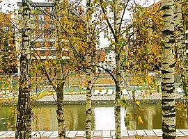 Ленинградский вокзал, электрички в направлении г. Пушкин (в пути 25-30 минут) → ж/д станция «Сходня» → пройти пешком 1000 метров (10 минут) → ЖК на ул. Овражной, 4