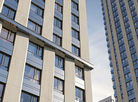 - Фасады из доломита. Здания комплекса облицованы светло-серым доломитом, что придает им элегантный и респектабельный внешний вид. Этот натуральный материал не только красив, но и обладает высокой долговечностью и устойчивостью к атмосферным воздействиям.