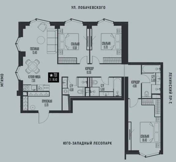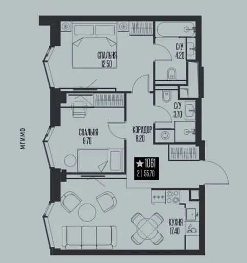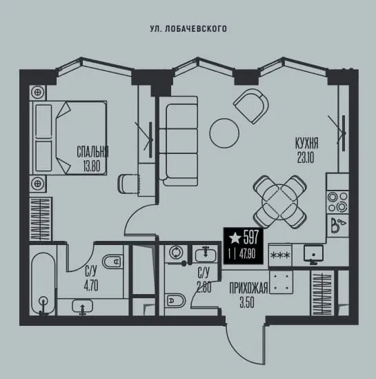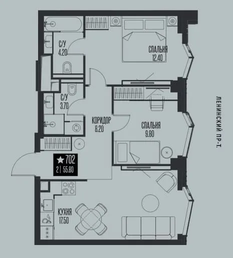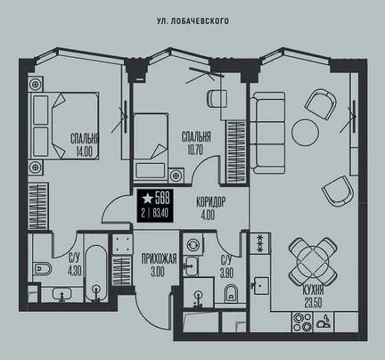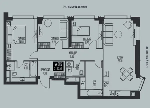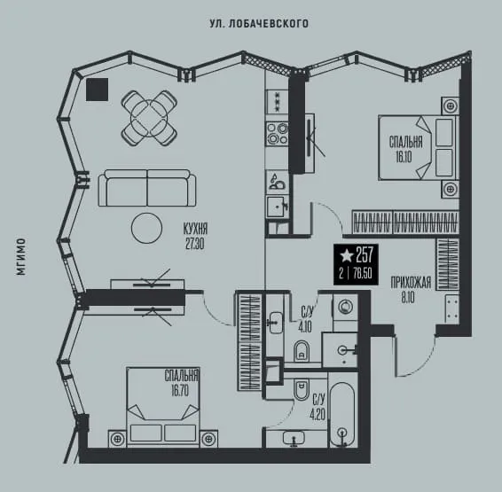 Купить квартиру в жк Ice Towers от уютных однокомнатных (от 34,3 кв. м) до просторных трехкомнатных (до 127,8 кв. м).