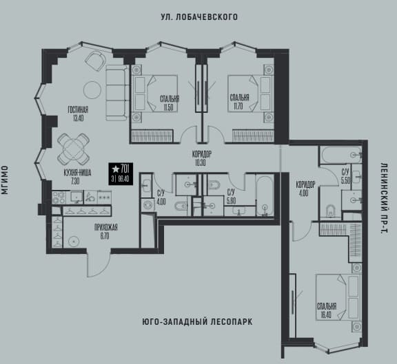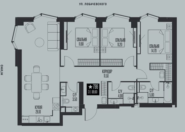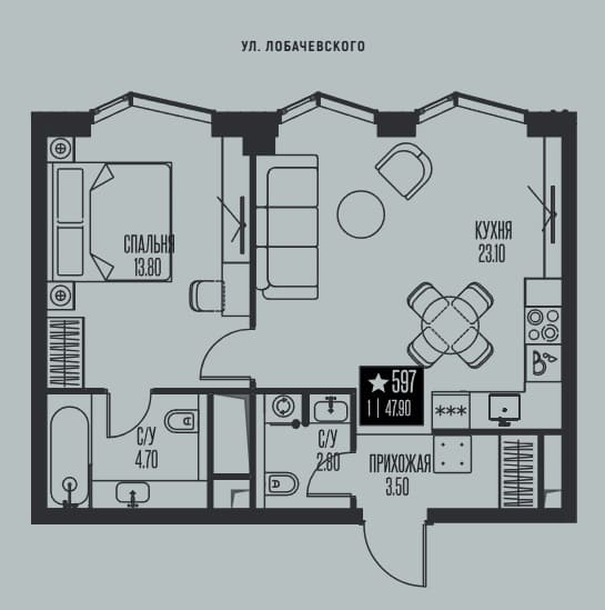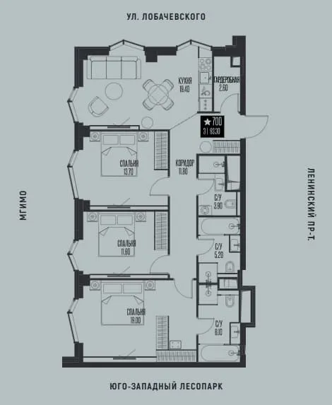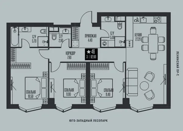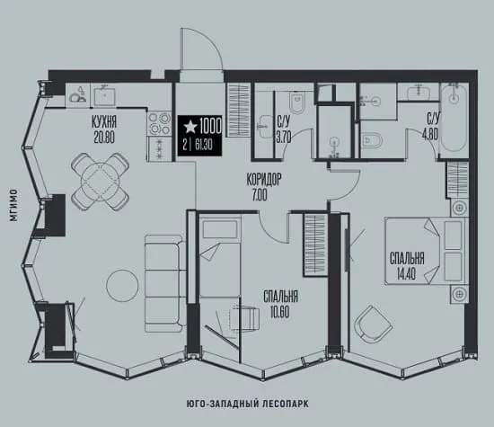 Варианты планировок: Евроформат, квартиры с 1, 2 и 3 спальнями, включая лоты с мастер-спальнями, гардеробными и кладовыми. На последних этажах представлены эксклюзивные форматы с панорамными окнами в пол и террасами.